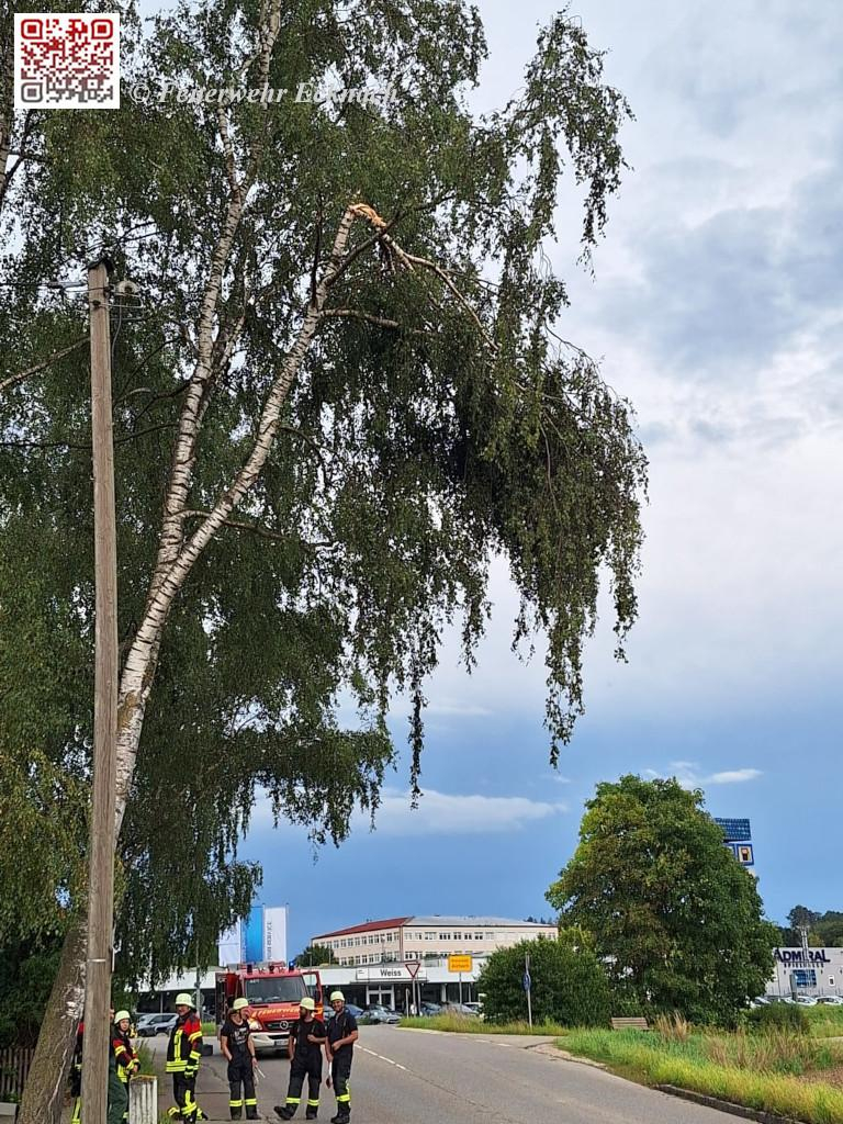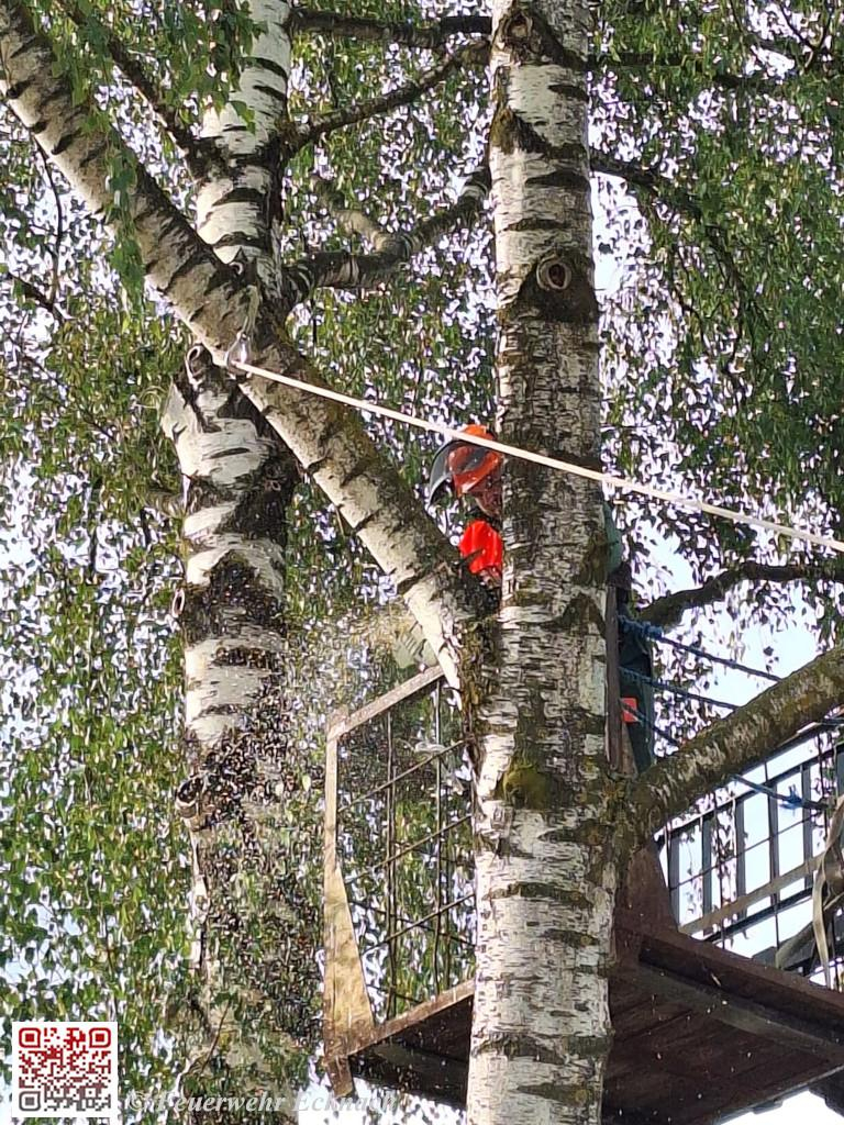 Beseitigung eines herunterhängenden Astes nach schwerem Gewitter am Vortag.