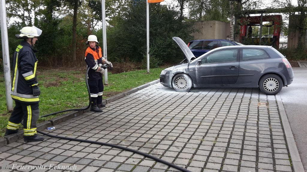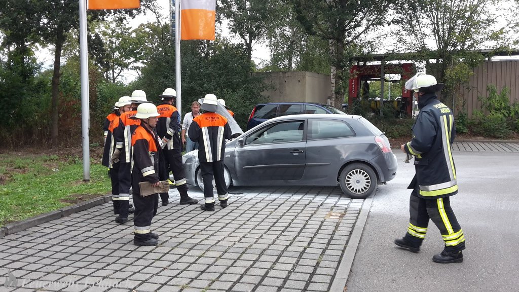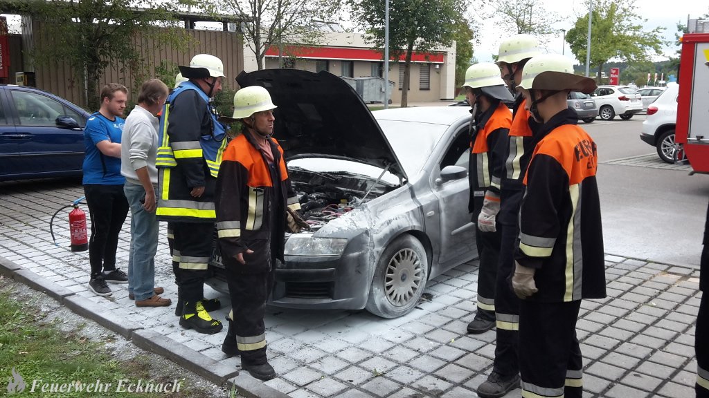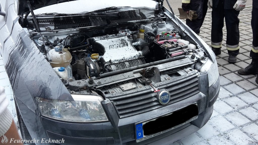 Mit dem Einsatzstichwort "Brand 2, PKW-Brand" wurden wir heute am späten Nachmittag von der ILS Augsburg alarmiert. Bei Eintreffem am Einsatzort auf dem Parkplatz eines ortsansässigen Baumarktes stellte sich heraus, dass der Brand -ein kleinerer Schmorbrand im Motorraum- vom Fahrer mittels Feuerlöschern bereits gelöscht war. Nachdem wir die Batterie abgeklemmt hatten, kontrollierte die Feuerwehr Aichach mit der Wärmebildkamera noch einmal den Motorraum auf eventuelle Glutnester. Sicherheitshalber führte der Angriffstrupp des AIC 40/1 dennoch Nachlöscharbeiten mit Wasser aus der Schnellangriffseinrichtung durch.